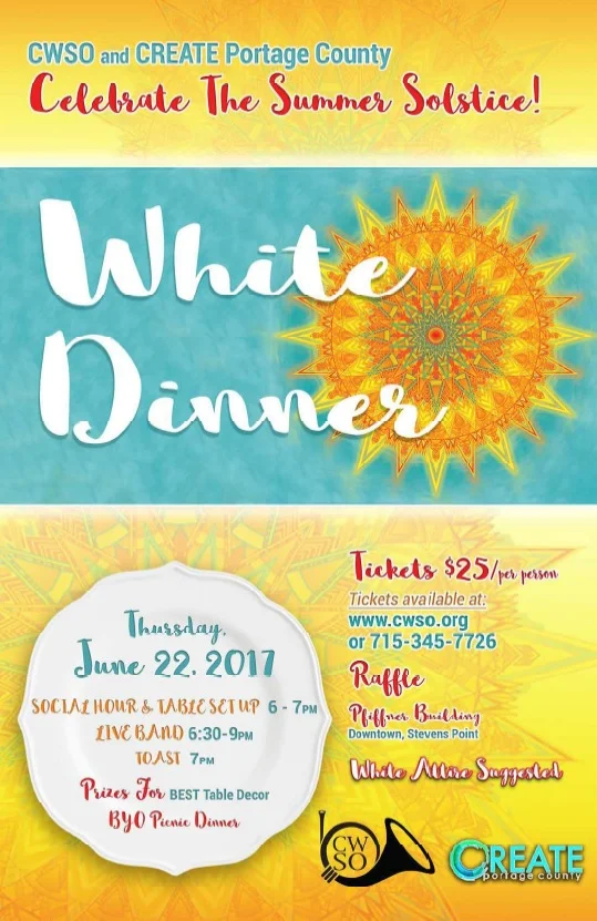 The Central Wisconsin Symphony Orchestra and CREATE Portage County are excited to present the second annual “Celebrate the Summer Solstice – White Dinner”.