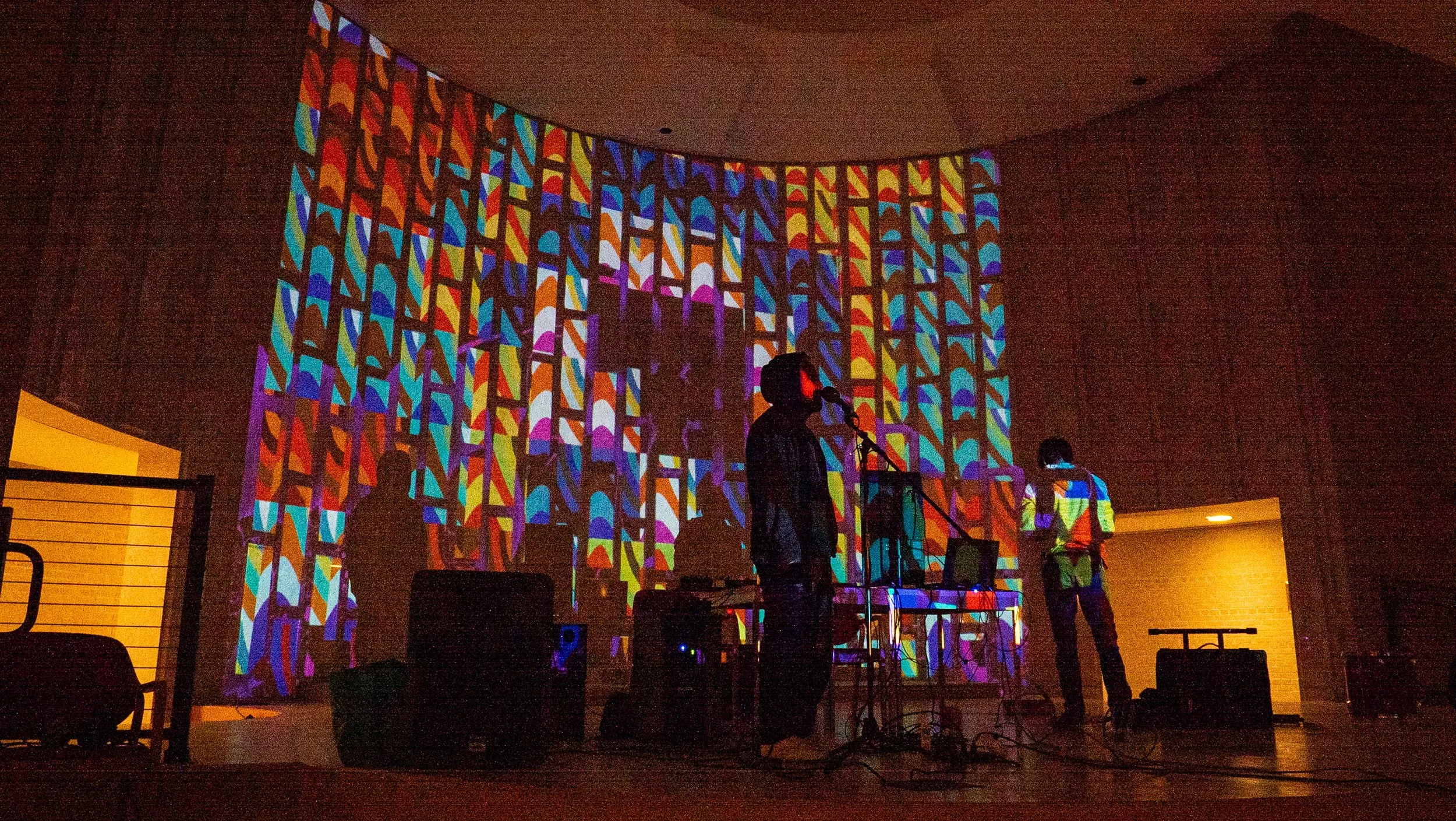 An Immersive Deejay Experience with Live Projection Mapping, featuring multimedia artists Lewis Bee and Barnplotter.